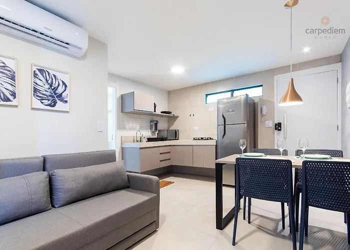 Situated 6 minutes' walk from Porto De Galinhas Center, the 32 m^2 Porto Blue #201 - Apartamento Por Carpediem Porto de Galinhas offers proximity to various nearby tourist attractions. Offering access to an outdoor pool area, this 0-bedroom apartment is within close proximity of Projeto Hippocampus.